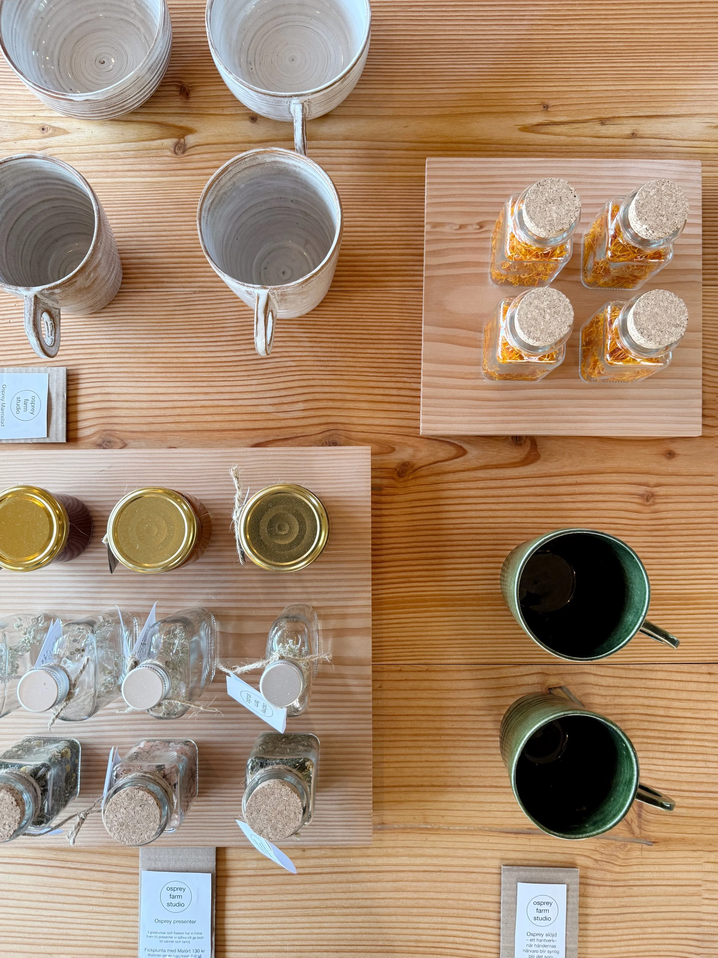 Från och med i helgen håller vi vår studiobutik öppen – varje gång Farmers Market välkomnar allmänheten, det vill säga alla helger i juli och september mellan klockan 12.00-16.00. Här har vi samlat en noga utvald kollektion av samtida hantverk från några av våra kära hantverksvänner. Föremål i trä, keramik, textil och metall – alla skapade med omsorg, tid och närvaro.